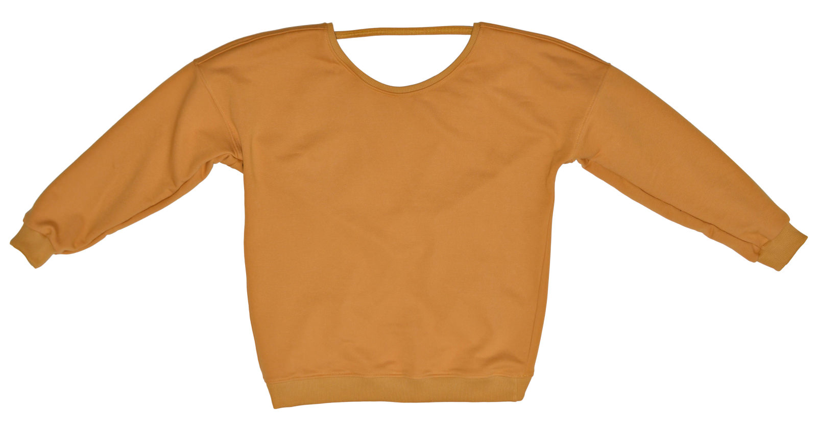 Bluza uszyta została z pętelkowej dzianiny bawełnianej w pięknym, miodowym kolorze i wykończona prążkowanym ściągaczem.